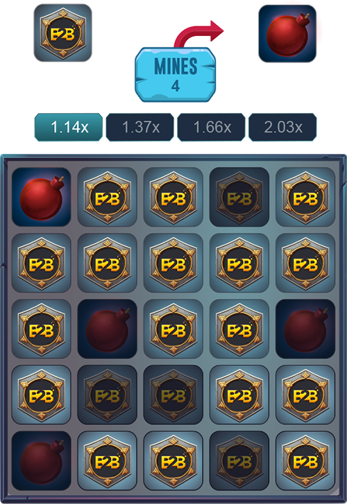 เกม Mines มีสนามที่มีหลังคาคลุม 25 สนาม โดยแต่ละสนามอาจมีหรือไม่มีระเบิดก็ได้ ผู้เล่นจะต้องเปิดสนามออกมาให้ได้ โดยสามารถมีระเบิดได้ตั้งแต่ 1 ลูกขึ้นไป หรือมากถึง 24 ลูกบนแผงเกม